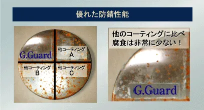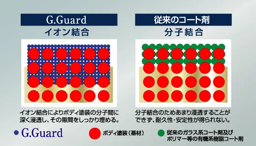 一方 G.Guard は、有機物を一切含まない無機系コーティング剤を使用。