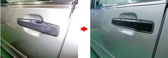 色あせて白く劣化してしまった樹脂も、特殊コーティングで、黒艶を再現することが出来ます!白ボケする前にコーティングをすることで、劣化を未然に防止する効果もあります。耐久性は半年以上(保護効果)